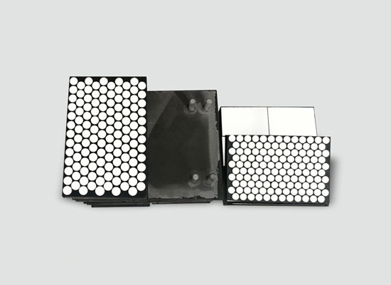 4、防脫落:陶瓷橡膠鋼板一體硫化,熱硫化工藝使得其結合非常牢固,每塊陶瓷都有穿透式螺栓穿過底部鋼板,焊接牢固,雙重保險;